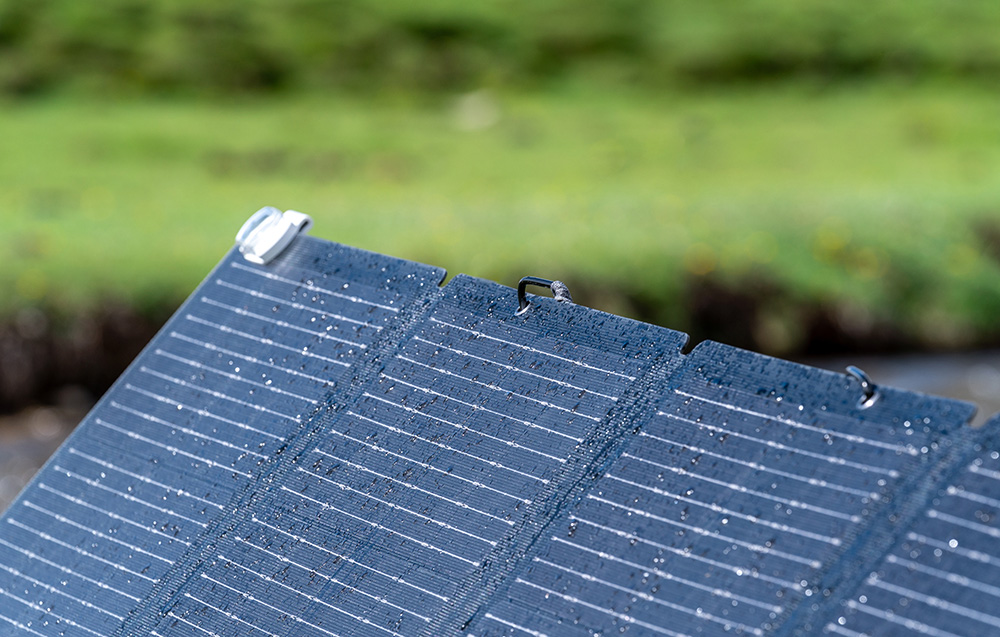 Panele słoneczne EcoFlow zostały wyposażone w zaawansowaną, warstwową budowę, która łączy wysoką efektywność z trwałością. Zewnętrzna powłoka jest odporna na kurz i wodę, a jej 92-procentowa przepuszczalność światła pozwala na lepsze pochłanianie promieniowania słonecznego. Elastyczna warstwa EVA zwiększa odporność mechaniczną paneli i wpływa na ich bezpieczne użytkowanie. Zastosowane ogniwa monokrystaliczne osiągają sprawność na poziomie 19–20%, a dodatkowe warstwy z włókna szklanego oraz wodoodporna baza skutecznie chronią panel przed wilgocią i uszkodzeniami.