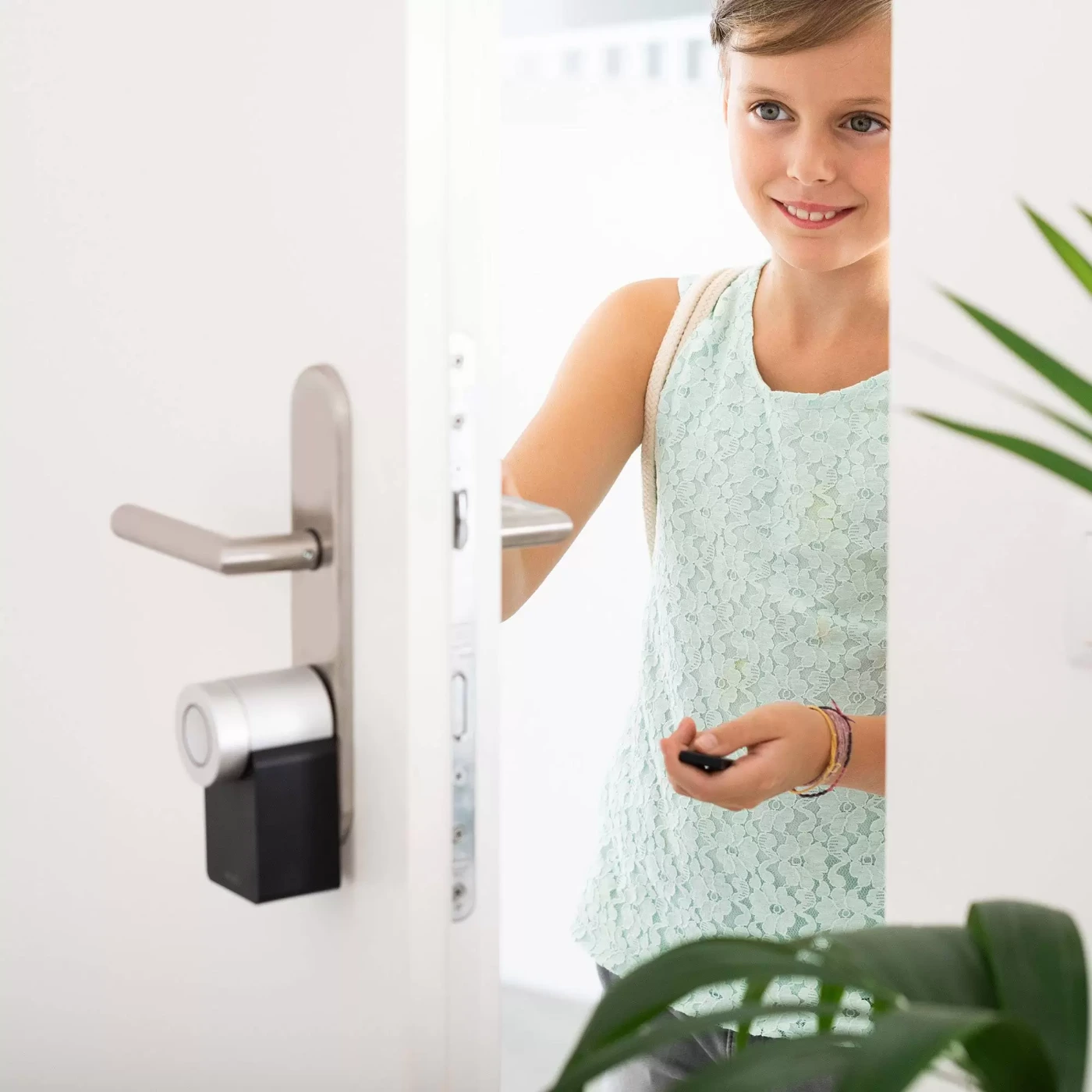 Od teraz nie musisz sprawdzać, czy Twój smartfon jest naładowany. Wystarczy jedno kliknięcie, aby wejść do domu za pomocą pilota zdalnego sterowania NUKI. Ten kompaktowy, wodoodporny pilot zasilany bateryjnie umożliwia sterowanie inteligentnym zamkiem NUKI przez Bluetooth. Do jednego pilota można przypisać nawet 100 zamków. Aby otworzyć drzwi, wystarczy nacisnąć przycisk pilota i przytrzymać go przez pięć sekund.