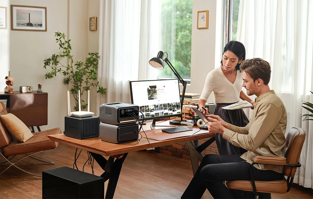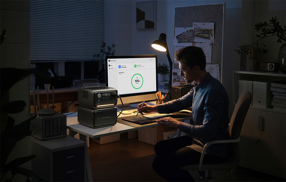 Dla dodatkowego bezpieczeństwa stacja może poinformować serwer NAS lub komputer PC że urządzenie jest bliskie rozładowania, dzięki czemu będzie można zapisać pliki i wyłączyć urządzenie. To najlepsze rozwiązanie dla domowego biura.