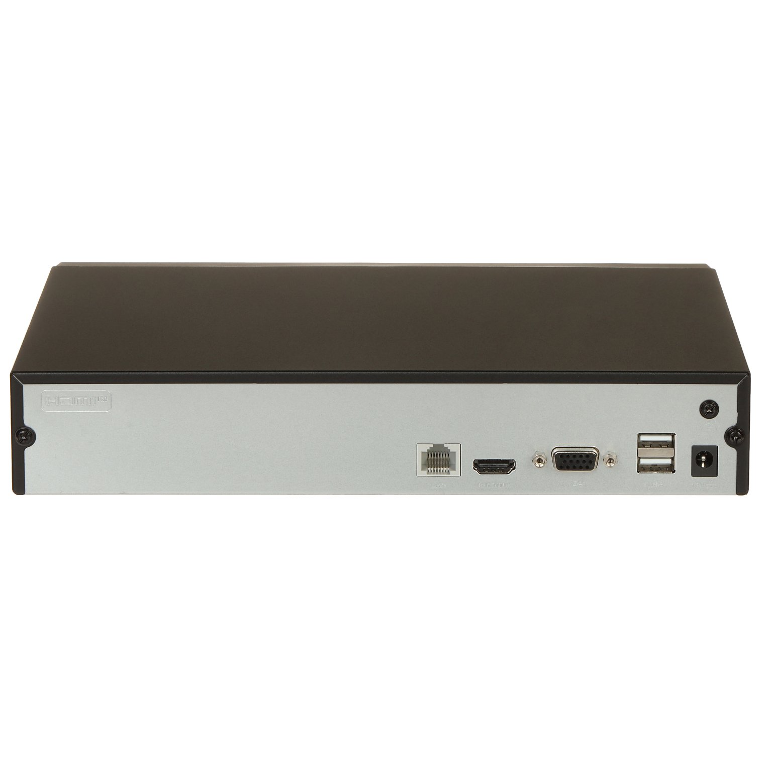 Rejestrator wyposażono w dwa porty USB 2.0, złącze Ethernet 1000 Mbps oraz wyjścia wideo VGA (1080p) i HDMI (4K UHD), co umożliwia komfortowe podłączenie urządzeń peryferyjnych. Dodatkowo złącza audio RCA pozwalają włączyć rejestrator do systemu PA, co zwiększa możliwości instalacji. Urządzenie daje także możliwość montażu jednego dysku twardego o pojemności do 16 TB, co zapewnia dużą przestrzeń do długotrwałej archiwizacji nagrań.