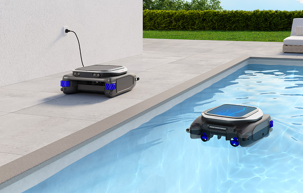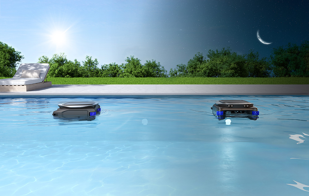 Robot czyści powierzchnię basenu w zakresie 360°, dzięki czemu ogranicza problem pomijanych fragmentów, zwłaszcza w narożnikach i wzdłuż krawędzi. Porusza się płynnie po wodzie, docierając do miejsc, w których zwykle zbierają się uporczywe zanieczyszczenia, a zastosowanie podwójnych szczotek rolkowych pomaga usuwać zarówno luźne śmieci, jak i przywierający osad na linii wody. Najważniejsze jest tu pełne pokrycie 360° bez martwych stref oraz podwójne szczotki do czyszczenia linii wody i krawędzi.