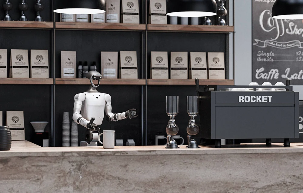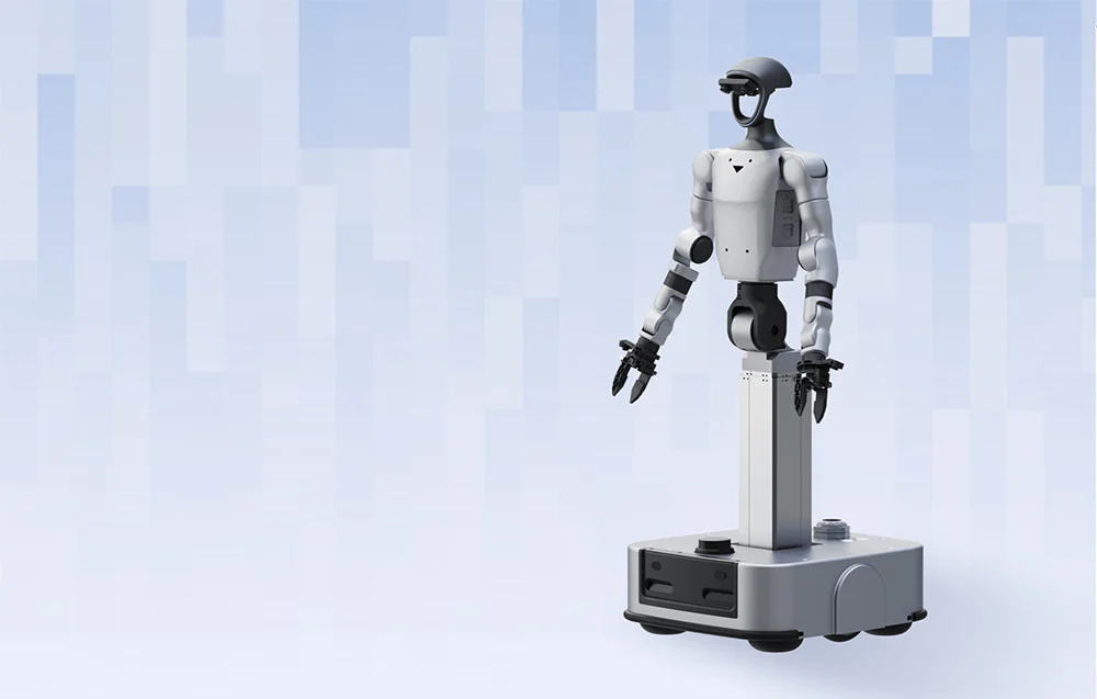 Robot oferuje łącznie 31 stopni swobody obejmujących ramiona, dłonie, talię i kolumnę podnoszącą oraz zapewnia dużą swobodę realizacji złożonych sekwencji ruchowych w jednym stanowisku roboczym. W praktyce oznacza to łatwiejsze wykonywanie wieloetapowych czynności manualnych i dokładniejsze pozycjonowanie chwytu, bez potrzeby ciągłego zmieniania położenia całego robota. Na uwagę zasługuje także szeroki zakres ruchu w pasie, w tym rotacja w osi Z do ±155°, co ułatwia naturalne ustawianie korpusu względem zadania.