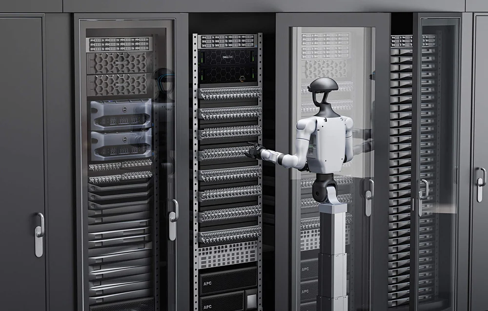 - robot humanoidalny Unitree G1-D U3 (mobilna baza kołowa, kolumna robocza, system percepcji)