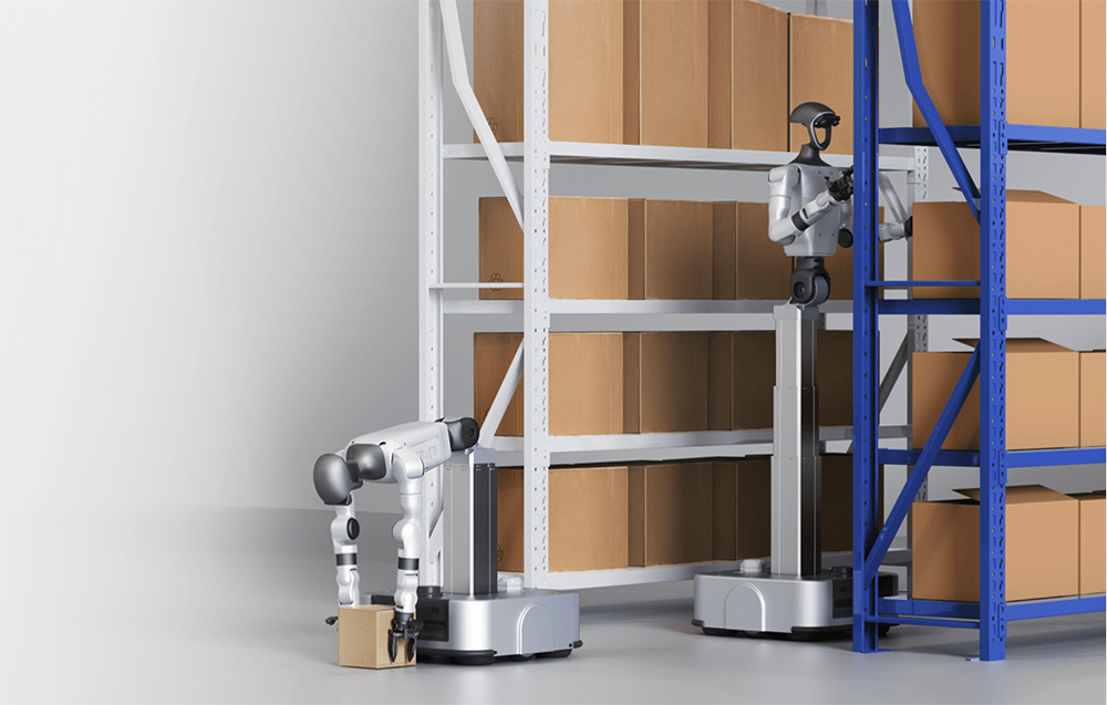 Unitree G1-D U6 oferuje łącznie 21 stopni swobody obejmujących ramiona, talię, kolumnę podnoszącą, chwytaki i bazę, co zapewnia szerokie możliwości manipulacyjne przy zachowaniu stabilnej, przewidywalnej pracy. Dwa ramiona po 7 DoF (łącznie 14 DoF) pozwalają wykonywać złożone czynności manualne, a talia z dużym zakresem ruchu w osiach Z (±155°) i Y (od -2,5° do +135° umożliwia naturalne pochylanie i obrót korpusu względem obiektu. Taki układ ułatwia sięganie po przedmioty z boku lub z różnych wysokości bez konieczności ciągłego przestawiania bazy.