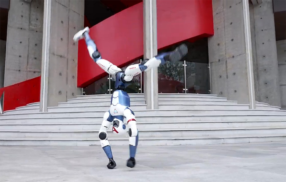 Robot oferuje łącznie 24 stopnie swobody, co pozwala uzyskać realistyczne, płynne i złożone ruchy całego ciała, bez wrażenia sztywności typowej dla prostszych konstrukcji. Unitree R1 Edu U1 potrafi skakać, biegać, chodzić na rękach, a także wykonywać sekwencje inspirowane sztukami walki, utrzymując stabilność w dynamicznych przejściach. Na architekturę ruchu składa się 6 DoF w każdej nodze, 2 DoF w talii oraz 5 DoF w każdym ramieniu, a szerokie zakresy pracy w pasie, biodrach i kolanach ułatwiają testowanie zaawansowanych algorytmów lokomocji, równowagi i manipulacji w scenariuszach z nagłymi zmianami tempa oraz pozycji.