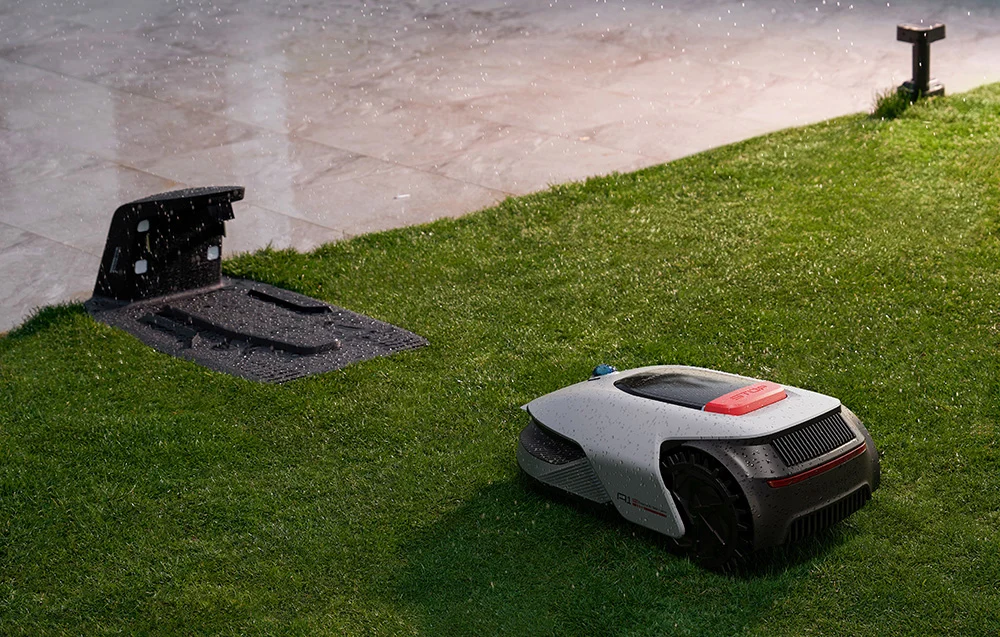 Klasa wodoodporności IPX6 ułatwia utrzymanie urządzenia w czystości, bo pozwala spłukiwać zarówno obudowę, jak i spód robota. Konstrukcja umożliwiająca szybką wymianę ostrzy bez narzędzi skraca konserwację, a w codziennym użytkowaniu docenisz zabezpieczenia: po podniesieniu robot emituje dźwięk ostrzegawczy i wysyła natychmiastowe powiadomienie do aplikacji Dreamehome. Wbudowany czujnik deszczu sprawia, że podczas opadów urządzenie wraca do stacji, a po poprawie pogody wznawia koszenie. Podobnie dzieje się, gdy poziom naładowania akumulatora spadnie poniżej 15% - robot sam wraca do ładowania, a potem kontynuuje pracę.