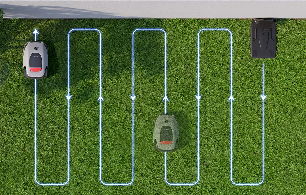 Robot porusza się po trawniku według inteligentnie zaplanowanej ścieżki w kształcie litery U, co daje równomierne i estetyczne koszenie oraz pomaga ograniczyć pominięte fragmenty. W trybie standardowym A1 Pro 1000 jest w stanie zadbać o trawnik do 800 m² w ciągu 24 godzin, a w trybie wysokiej wydajności nawet do 1000 m² w tym samym czasie. Masz do wyboru koszenie całego obszaru, pracę w wybranych strefach oraz tryb cięcia przy krawędzi, a w aplikacji możesz wybrać gotowe wzory lub tworzyć własne kompozycje - serca, kwadraty i inne kształty, które nadają ogrodowi charakter.