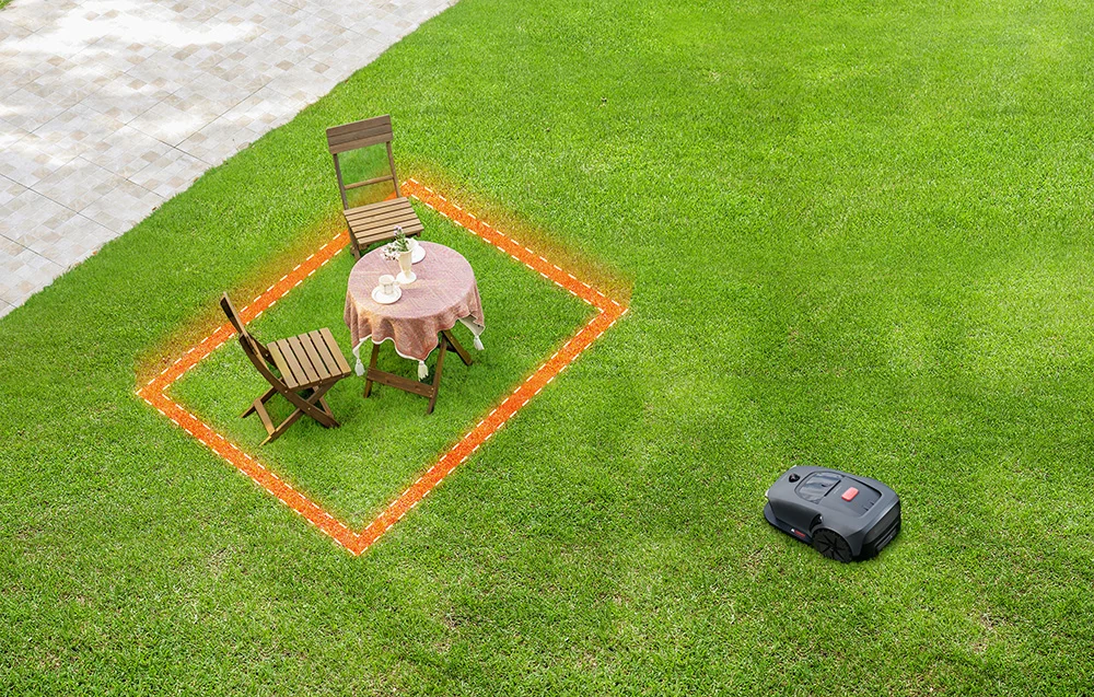 W tym zestawie nie musisz planować instalacji przewodu ograniczającego, bo granice pracy ustawiasz wirtualnie w aplikacji MOVAHome. Z poziomu smartfona zdefiniujesz strefy koszenia, miejsca wykluczone i harmonogramy, a pierwsze uruchomienie sprowadza się do ustawienia stacji i rozpoczęcia mapowania. Najważniejsze jest tu wirtualne granice i konfiguracja w aplikacji oraz prosta instalacja bez kabli i przeróbek ogrodu.