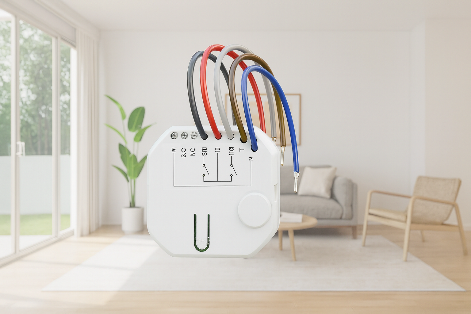 Urządzenie wyróżnia się kompaktową budową, co umożliwia jego montaż dopuszkowy. Dwa wejścia sterujące pozwalają na podłączenie przełączników ściennych mono- i bistabilnych, co daje większą elastyczność w konfiguracji.