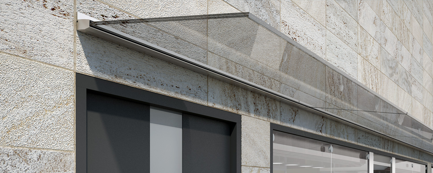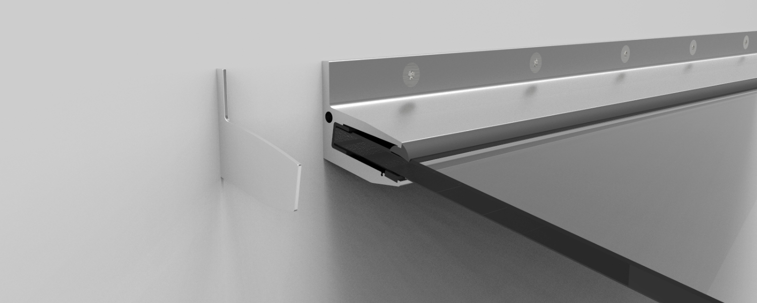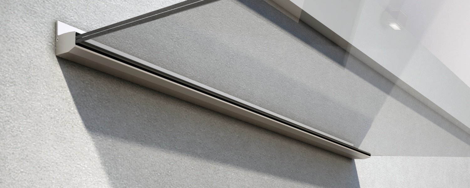 Podstawą systemu jest uniwersalna listwa aluminiowa o długości 1400 mm, która stanowi stabilne mocowanie dla tafli szkła. Aluminium zapewnia trwałość, odporność na codzienne użytkowanie i estetyczny wygląd przez długi czas, a matowa anoda podkreśla nowoczesny charakter całego rozwiązania. Tego typu zadaszenie dobrze sprawdza się zarówno w zabudowie prywatnej, jak i w obiektach użytkowych, gdzie liczy się lekka forma i uporządkowany detal architektoniczny.