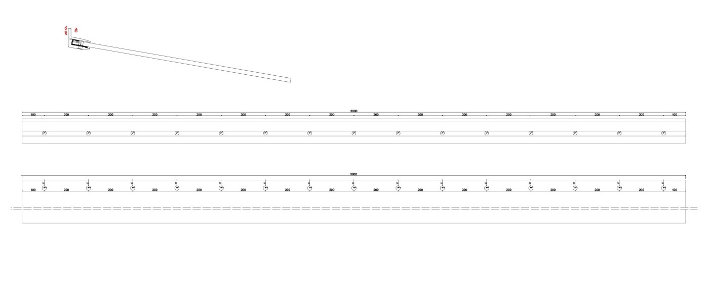 Najważniejszym elementem systemu jest listwa aluminiowa o długości 3000 mm, która umożliwia wykonanie zadaszenia o większej szerokości. Takie rozwiązanie dobrze sprawdza się przy szerszych wejściach, witrynach lub ciągach komunikacyjnych, gdzie liczy się nie tylko estetyka, ale również odpowiedni zakres osłony. Dłuższy profil daje większe możliwości projektowe i ułatwia dopasowanie systemu do nowoczesnej architektury.
