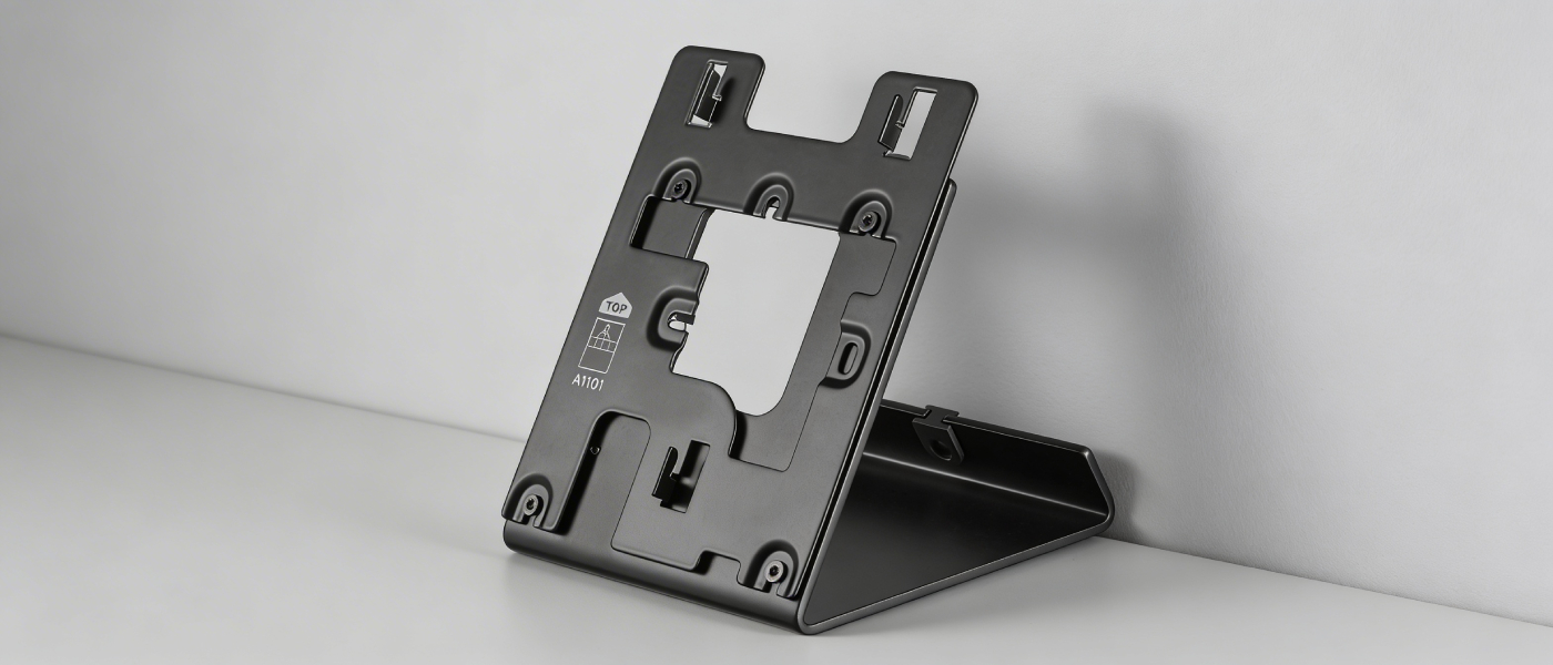 Stojak stołowy DoorBird A8003 Black Edition to wygodna alternatywa dla montażu ściennego, jeśli chcesz mieć stację wewnętrzną IP zawsze pod ręką. Umożliwia stabilne ustawienie modelu A1101 na blacie biurka, komodzie lub stoliku, a przy tym pomaga utrzymać estetykę instalacji dzięki uporządkowanemu prowadzeniu przewodów i łatwemu dostępowi do ekranu.
