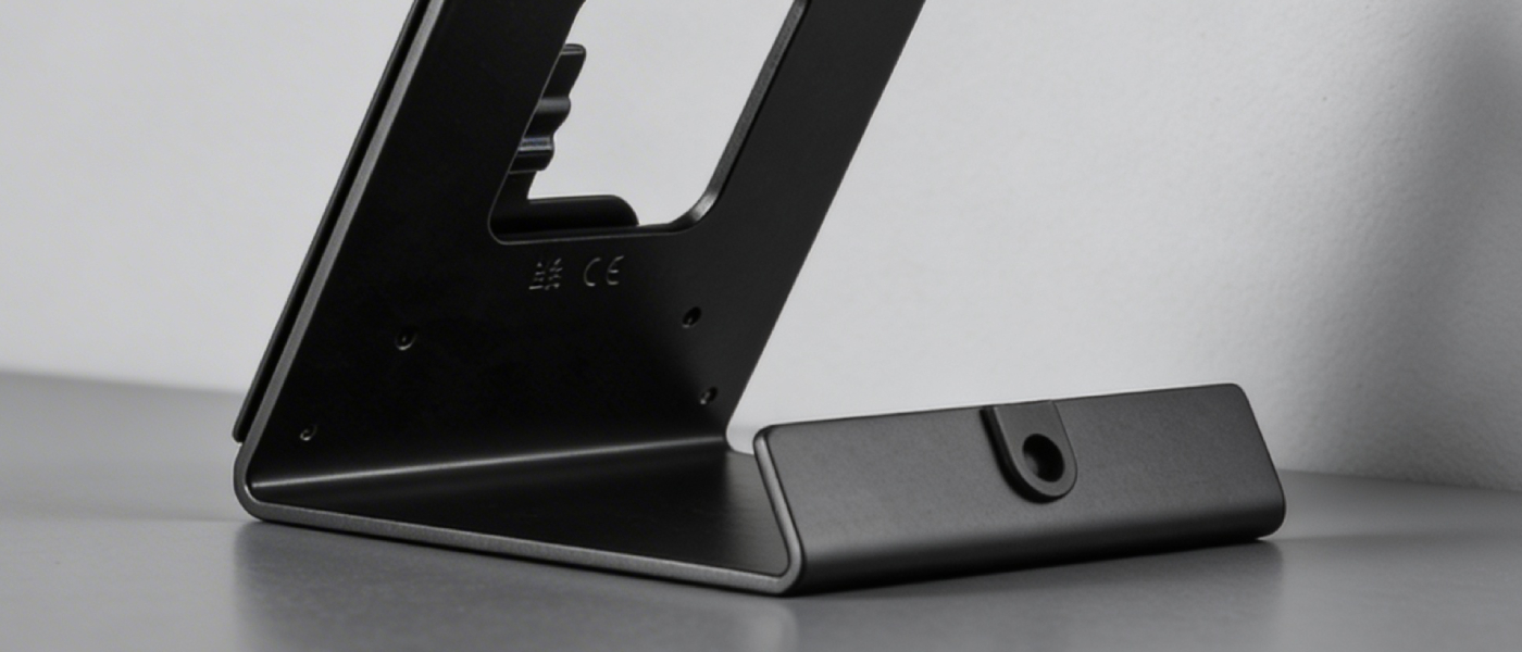A8003 powstał z solidnej stali i został wykończony czarnym malowaniem proszkowym, które pasuje do nowoczesnych aranżacji i dobrze znosi intensywne użytkowanie. Od spodu zastosowano warstwę antypoślizgową, dzięki której stojak trzyma się blatu, a stacja wewnętrzna pozostaje stabilna nawet przy częstej obsłudze.