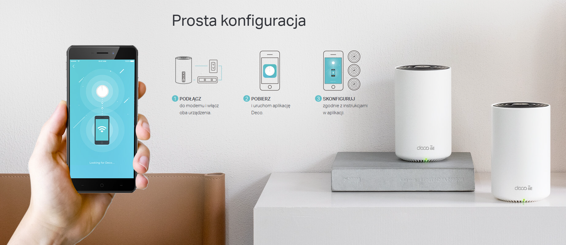| Technologia TP-Link Mesh | Jednostki Deco współpracują ze sobą, tworząc płynną sieć na powierzchni całego domu |