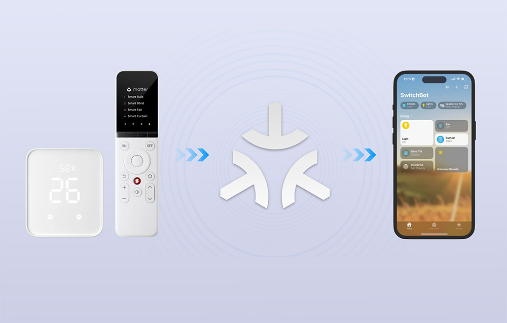 | Kompatybilność | urządzenia IR (TV, klimatyzatory, oświetlenie, projektory, DVD, wentylatory itd.), urządzenia Bluetooth SwitchBot, Apple Home, Google Home, Alexa, SmartThings (przez Hub 2 lub Hub Mini Matter Enabled) |