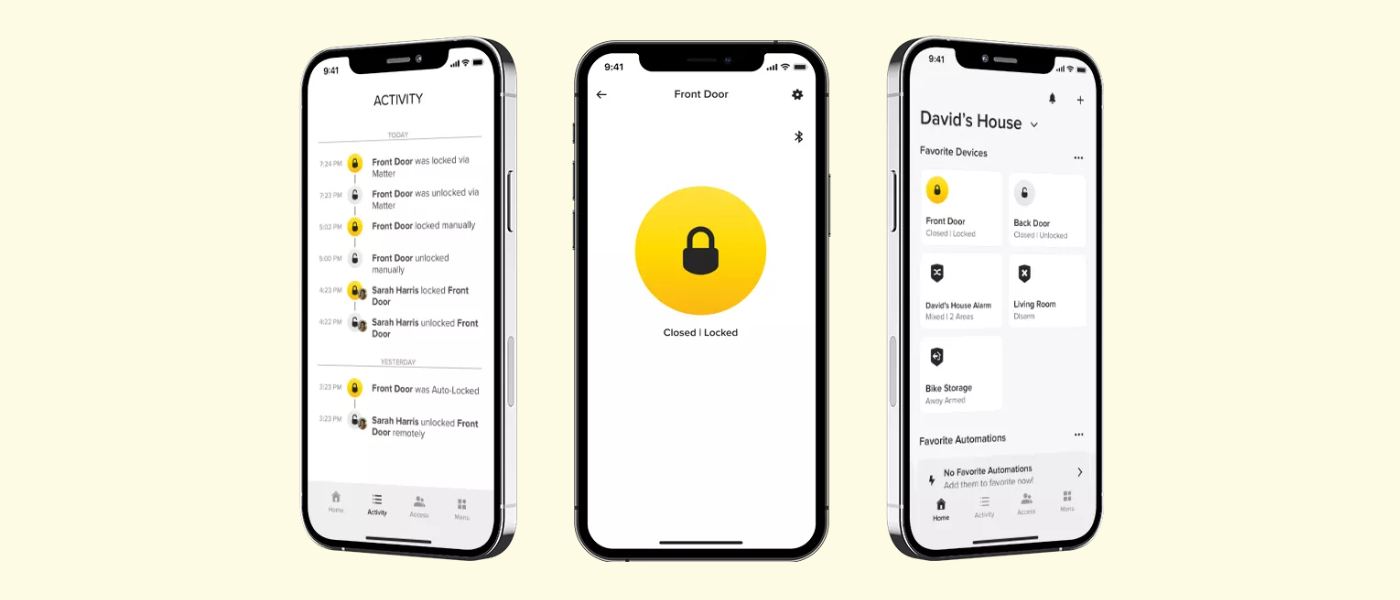 - Zdalne sterowanie zamkami i urządzeniami Yale: rygluj, odrygluj i sprawdzaj status drzwi oraz innych urządzeń z ekosystemu Yale Smart Security z poziomu aplikacji Yale Home, z dowolnego miejsca.