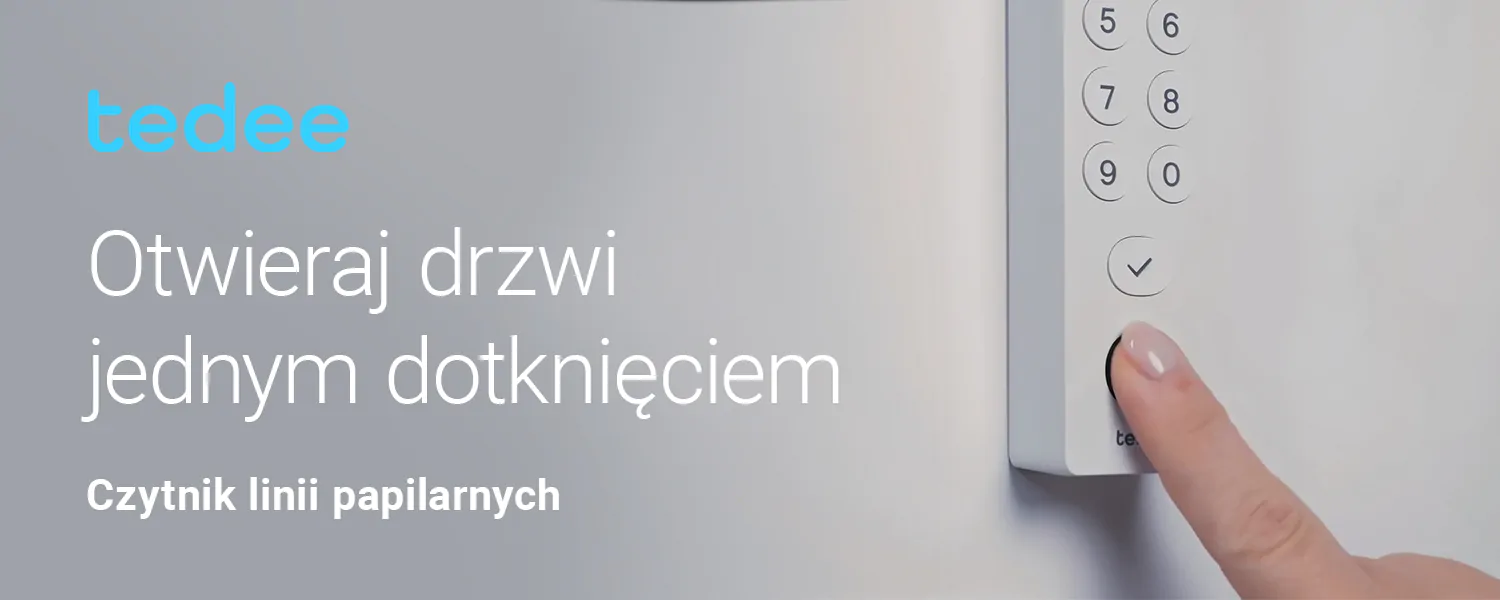 - Integracje smart home (z Tedee Bridge): Google Home, Amazon Alexa, Homey, FIBARO, Loxone i więcej + zdalna kontrola i dziennik aktywności w czasie rzeczywistym.