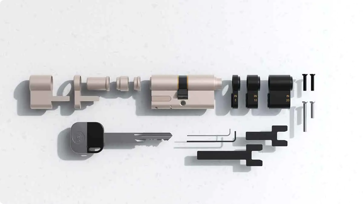 Regulowaną wkładkę Yale Linus® Smart Lock – uniwersalną, regulowaną wkładkę cylindryczną, która dopasowuje się do większości drzwi i gwarantuje wysoki poziom bezpieczeństwa mechanicznego.