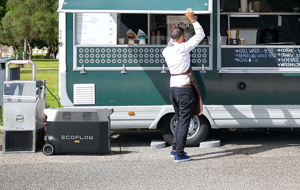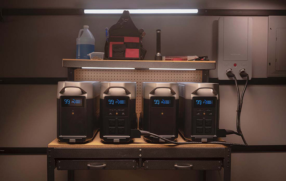 Ekosystem DELTA Pro można łatwo zintegrować z inteligentną stacją zasilającą EcoFlow. Gdy poziom naładowania DELTA Pro jest niski, urządzenie uruchamia się automatycznie, ładuje akumulator i wyłącza silnik po całkowitym naładowaniu. Inteligentny generator EcoFlow jest bardziej wydajny, ładuje się szybciej i traci mniej energii niż konwencjonalne rozwiązania.