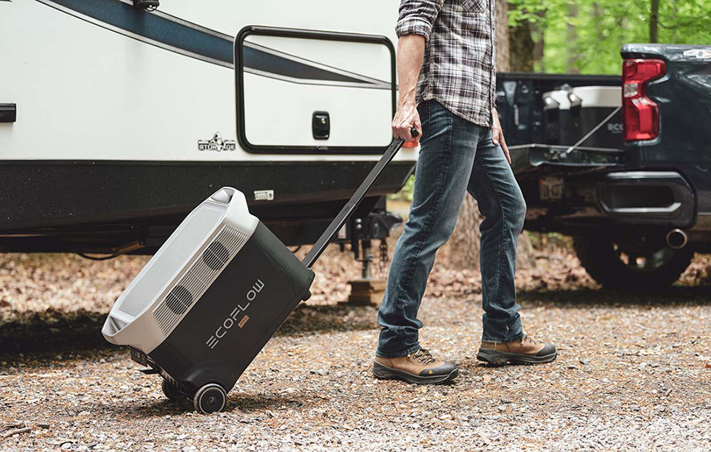 Dzięki stacji zasilającej DELTA Pro możesz udać się w dowolne miejsce. Urządzenie jest łatwe do przenoszenia dzięki kółkom i wysuwanej rączce w stylu walizki. Dodatkowo DELTA Pro posiada dedykowany port Anderson 30 A, gniazdko elektryczne oraz możliwość zasilania zarówno z paneli słonecznych, jak i sieci energetycznej, co czyni ją pełnowartościowym rozwiązaniem dla Twoich wycieczek na świeżym powietrzu i wakacji w kamperze.