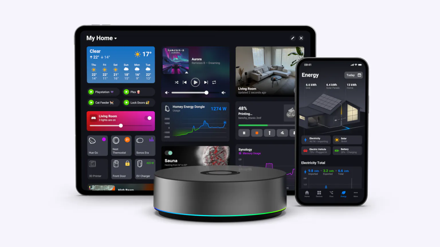 | Aplikacja mobilna: | Homey (Android/iOS) + Homey Web App |